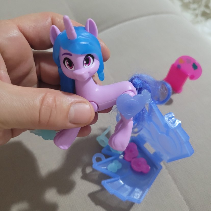 Pastel mavi renkte, gözlüklü unicorn figürü. Küçük bir ş easel ve boya paleti ile birlikte geliyor. Pürüzsüz, renkli malzemeden üretilmiştir. Hiç bir sorunu yok.