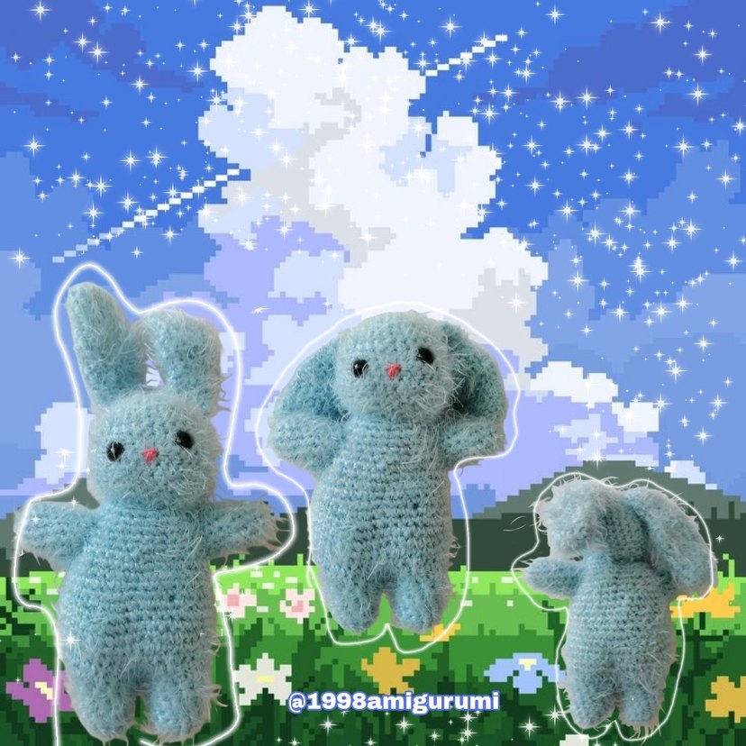 Pastel mavi renkte, yumuşak dokulu amigurumi peluş oyuncak. El işi detaylı dikişlere sahip, koleksiyon veya hediye için uygun. Yumoş yumoş tüylü bir ürün.
