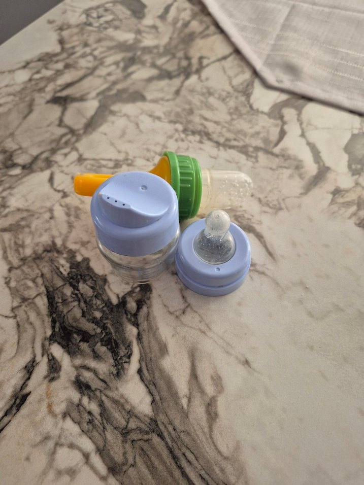 Pastel mavi kapaklı, temizlenmesi ve kullanımı kolay şeffaf gövdeli bebek biberonu. Yumuşak emzik içerir.