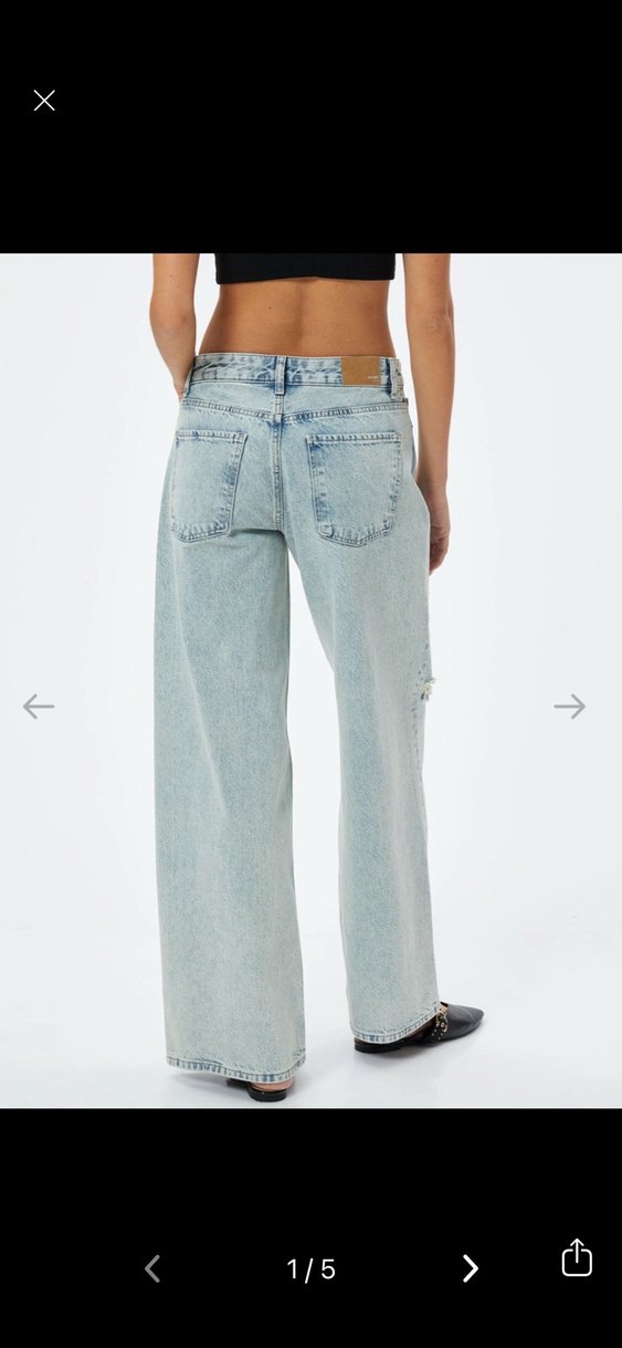 pastel mavi renkte bol kesim kadın jean pantolon, günlük kullanım için uygun rahat bir.