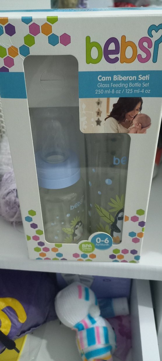 0-6 ay için uygun, BPA içermeyen pastel mavi cam biberon seti. 250ml ve 125ml olmak üzere iki şişe içerir.
