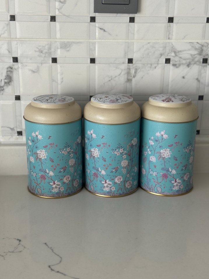Pastel Mavi Çiçek Desenli Mutfak Kavanozları