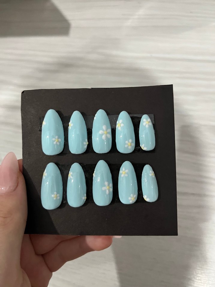 Pastel Mavi Çiçek Desenli Tırnak Seti