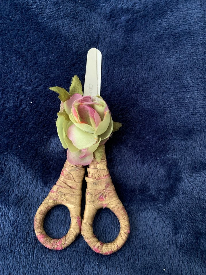 Pastel mavi renkte, sapında çiçek detaylı manikür makasıdır.