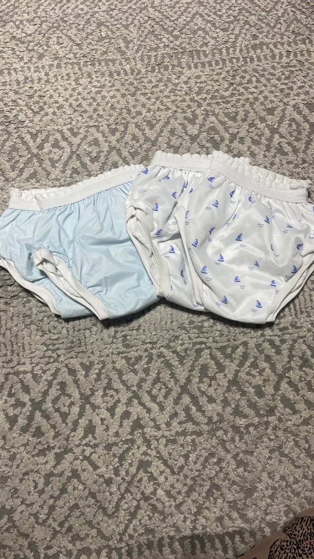 Pastel mavi renkte, biri düz diğeri küçük yelkenli desenli iki adet çocuk külotu. Yumuşak lastikli bel bantları rahatlık sağlar.