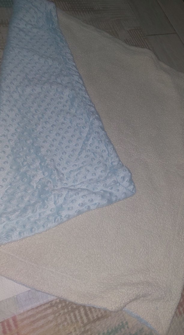 Pastel mavi renkte, desen içermeyen, sentetik kumaştan yumuşak çocuk battaniyesi. Rahatlık için idealdir. ️