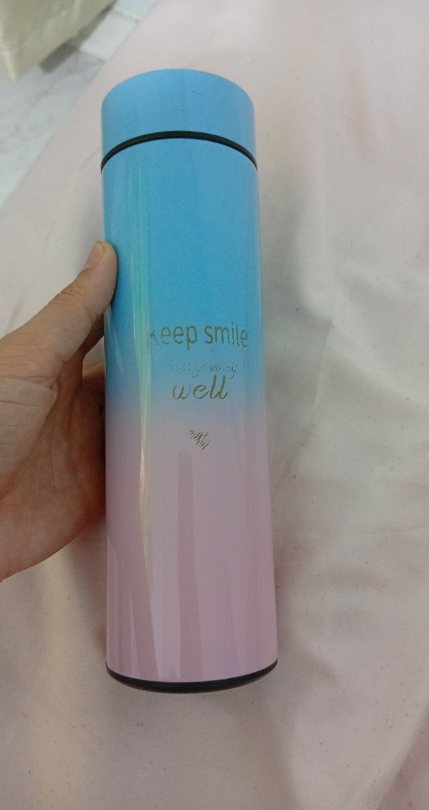 Pastel mavi renkte, "keep smile" ve "well" yazılı çocuk termosudur. İçecekleri sıcak tutar.
