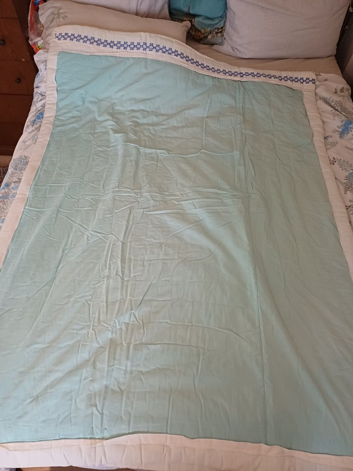 Pastel mavi renkte, düz ve sade tasarımlı çocuk bebek pamuk yorgan ölçülerı 160×115