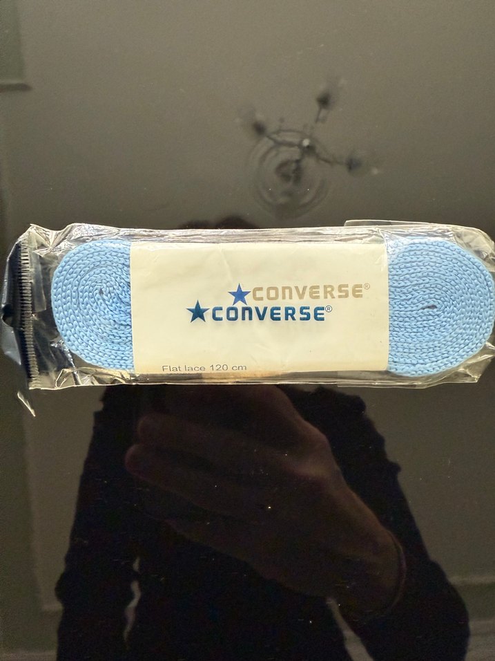 Converse marka, pastel mavi renkte, yumuşak dokulu ayakkabı bağcığı. Ambalajda "CONVERSE" ve "XCOnVERSE" yazıları bulunur. #converse #mavi #bağcık #120cm hiç kullanılmamıştır. Unixes kullanıma uygundur.