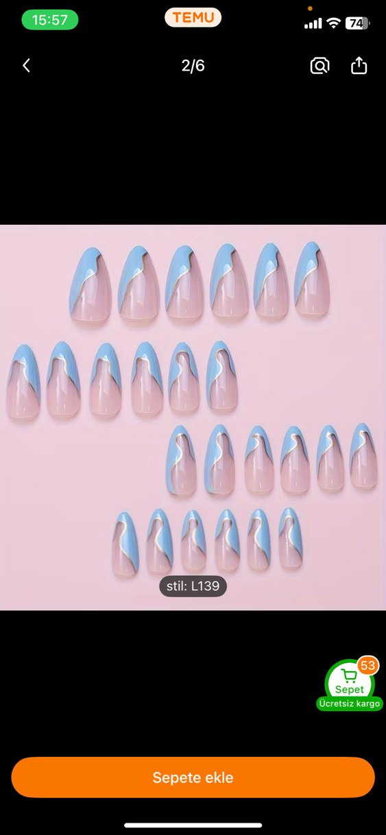 Pastel mavi dalgalı tasarıma sahip tırnak süsleri, şık bir görünüm sunar. Farklı boyutlarda tırnaklara uyum sağlar.