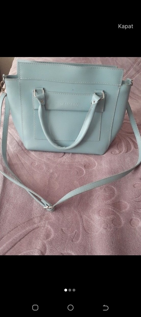 Pastel mavi renkte, deri malzemeden yapılmış, tokalı ve çağdaş tarzda kadın çantasıdır. Günlük kullanıma uygundur.