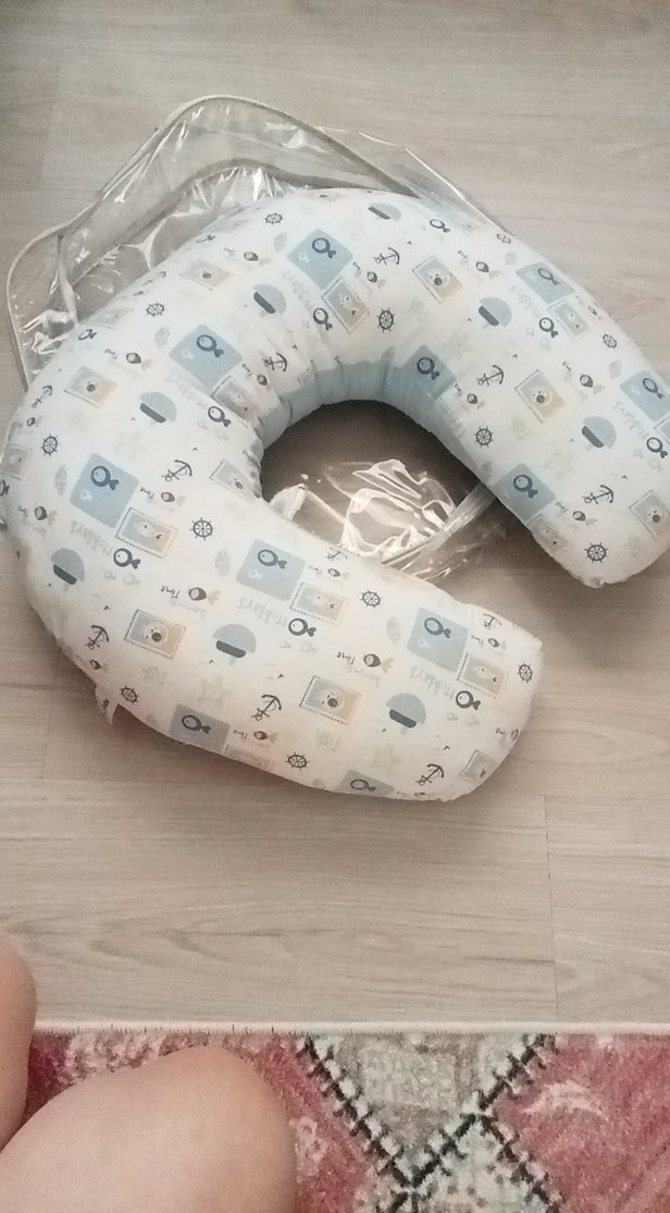 Pastel mavi renkli ve desenli, hamilelik ve emzirme için destek sağlayan yumuşak kumaşlı yastık.