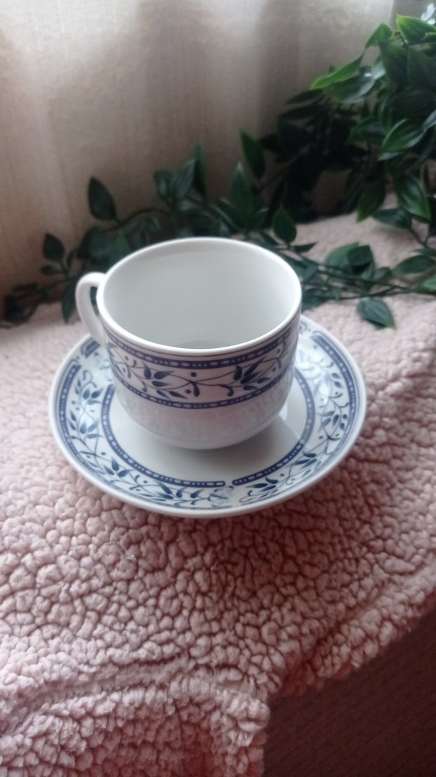 Pastel mavi desenli porselen fincan ve tabağı, şıklığı ve kullanışlılığı bir arada sunar. ☕