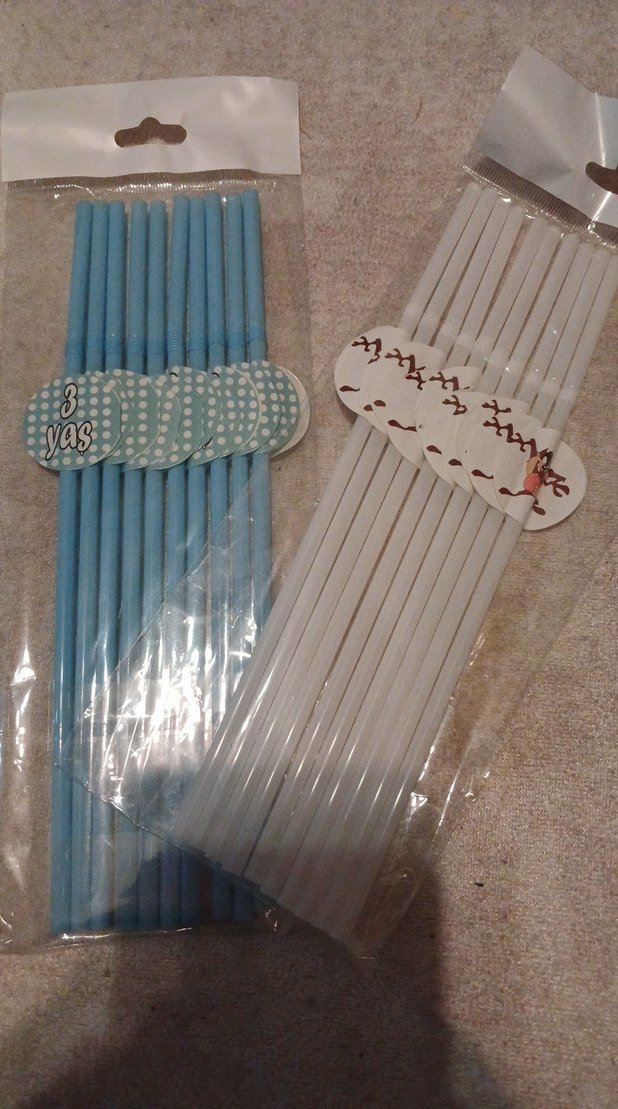 Pastel mavi renkli, 3 yaş doğum günü için pipet. 10 adet her pakette vardır. iki paket 20 adet toplamda. paket fiyatı 15.iade kabul edilmeyecek