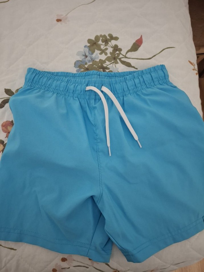 Pastel mavi renkte, beyaz bağcık detaylı, elastik bel bandına sahip düz erkek çocuk deniz şortudur. Kısa boyda ve yüzme için uygundur.
