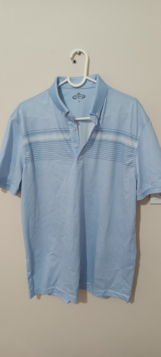 Düğmeli, yakalı ve kısa kollu bu erkek polo tişört, pastel mavi renkte ve göğüs kısmında ince yatay detaylara sahip. Rahat kesimi ve sentetik kumaşıyla günlük sokak stiline uygun.