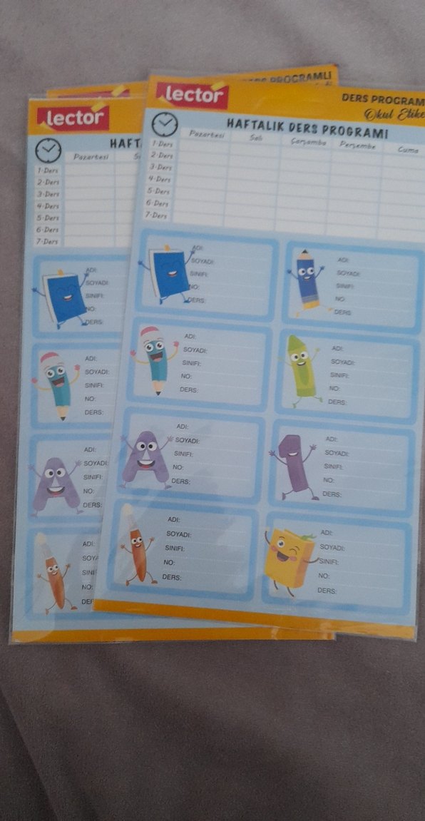 Pastel mavi renkte, gün ve ders bölümleri bulunan, ad, soyad, sınıf ve ders bilgileri için alanlar içeren haftalık ders programı. 3 paket gelmektedir ve her paketin içinde 24 adet sticker bulunmaktadır.