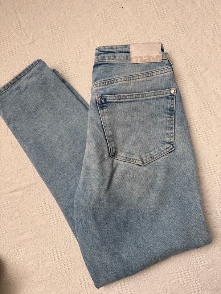 Pastel mavi renkte, normal boy midi kesim, regular fit kadın denim pantolon. Normcore tarzıyla günlük kullanıma uygun, desen içermeyen sade ve şık tasarım.