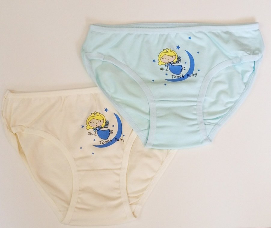 Yumuşak pastel mavi ve krem renklerde, nakışlı diş perisi desenli çocuk külotları. Rahat ve şık, günlük kullanım için uygun. ♀️