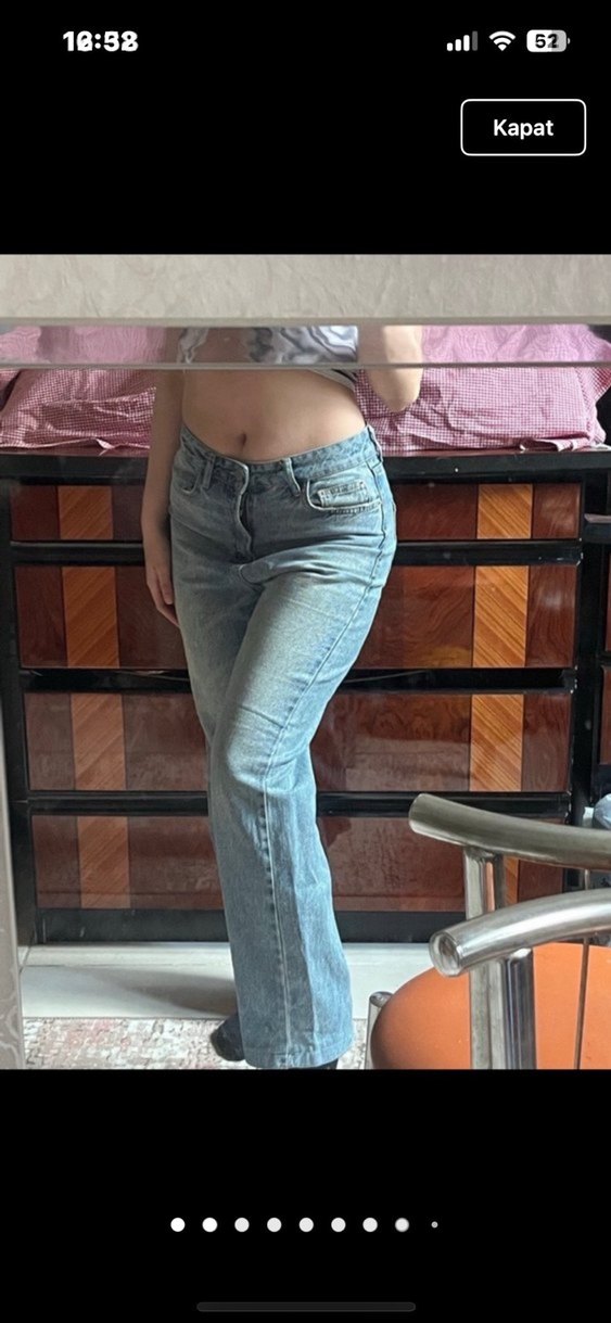 Pastel mavi renkte, normal boyda ve dar kesim kadın denim pantolon. Günlük kullanıma uygun, rahat ve şık sokak stili sunar.