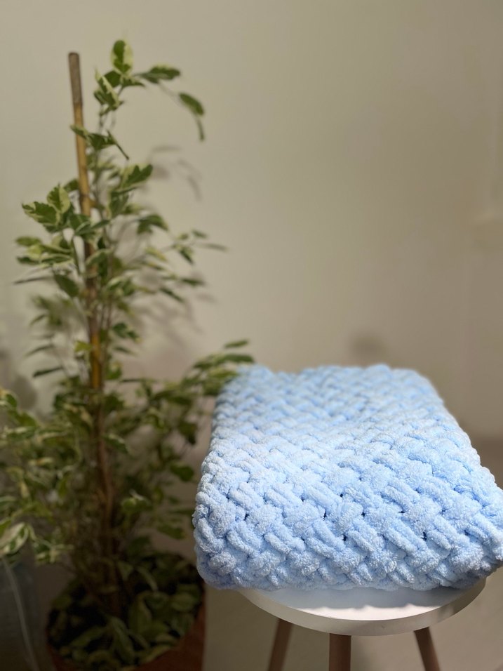 Pastel mavi renkte, yumuşak örme çocuk battaniyesi, nazik ısı ve konfor sağlar. Alize puffy battaniye. İstenilen ölçü ve renkte sipariş alınır.