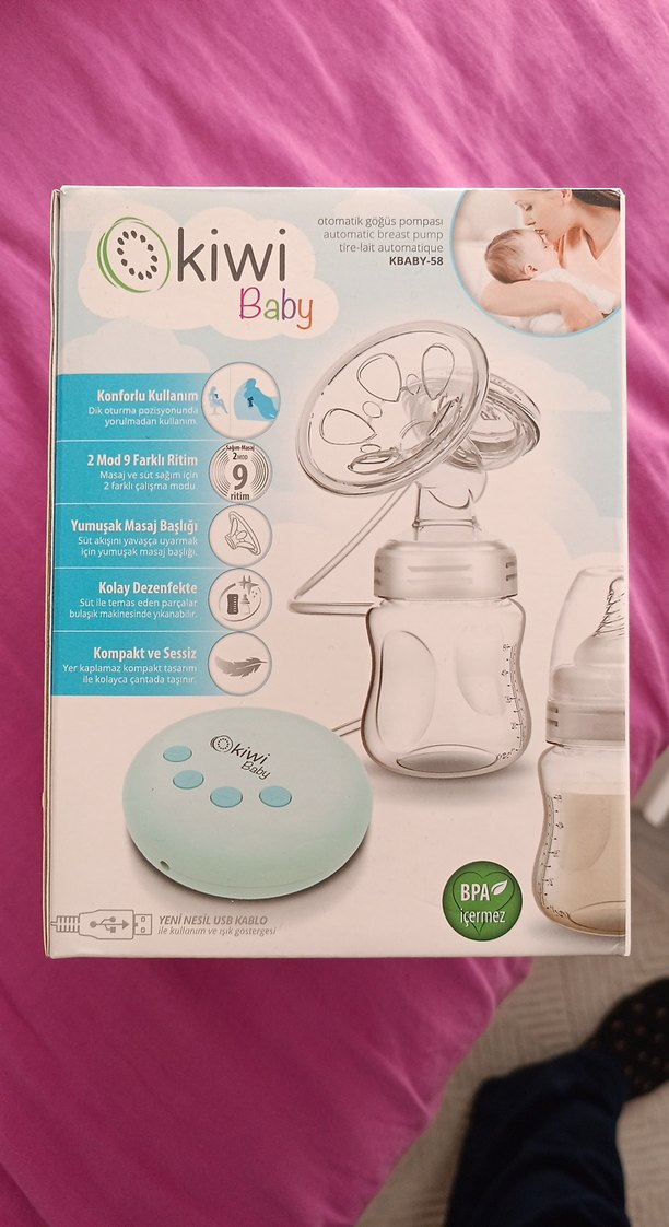 Pastel mavi otomatik göğüs pompası, yumuşak masaj başlığı, 2 farklı ritim modu ve kolay dezenfeksiyon özelliklerine sahiptir. Kompakt, sessiz ve BPA içermez. Bir kaç kez kullanılmıştır