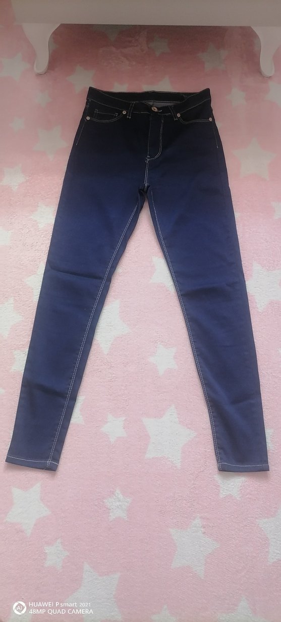 Pastel mavi tie-dye desenli, elastik denim kumaştan yapılmış, midi boy ve regular fit kadın kot pantolon, günlük rahat kullanım için uygundur. Marka temsili s beden