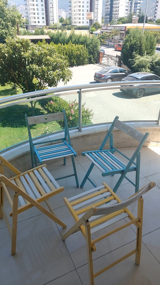 Pastel mavi ve sarı renkte, hafif ve sade tasarımlı katlanan ikea sandalyesi. Hem iç hem dış mekanda kullanılabilir.