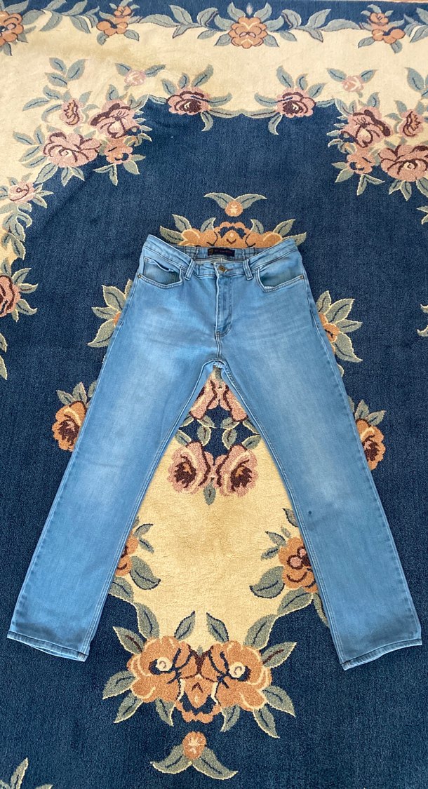 Bu erkek kot pantolonlar, rahat kesim ve pastel mavi tie-dye deseniyle günlük kullanıma uygun, sokak stiline uygun rahat bir görünüme sahiptir. Ürünün herhangi bir sorunu yoktur. İçinde ve dışında yırtık yoktur. Çok az giyilmiştir.(kilo aldığı için) resimdekinden renk olarak biraz daha koyudur. Boy 97 cm bel 41 iç bacak 28