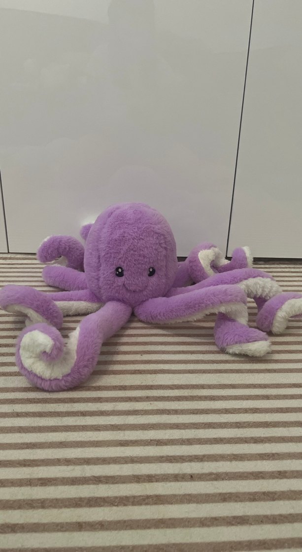 Yumuşak pastel mor renkli, beyaz detaylı ahtapot peluş oyuncak. Nakışlı gözleri ve çoklu esnek kolları bulunur. 45 cm