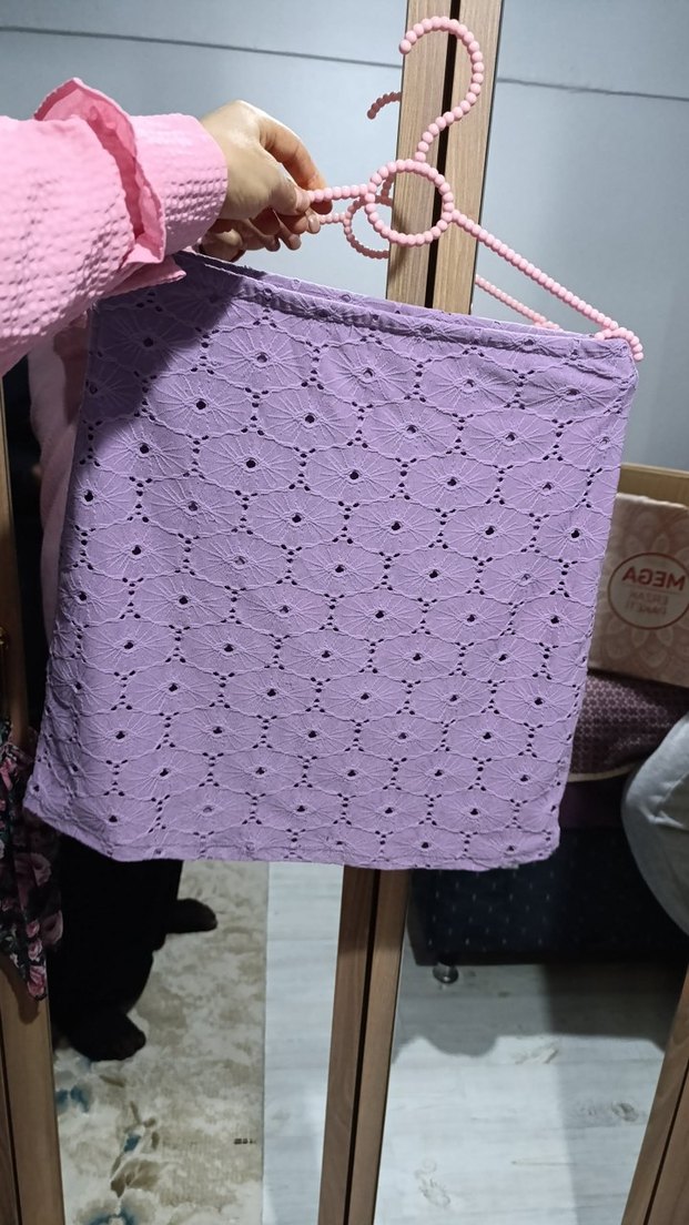 Pastel mor renkte, yumuşak kumaştan yapılmış, zarif delikli desenli bebek sling, bebeğinizi rahat taşımak için uygundur.
