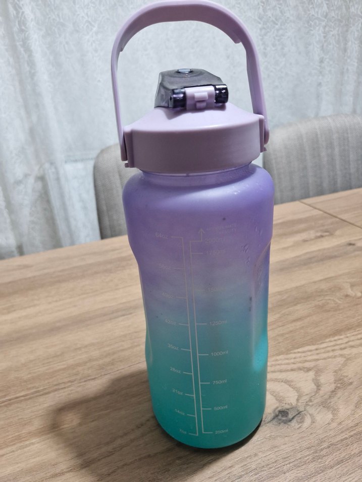 Pastel mor renkte, ölçü işaretli ve kullanışlı saplı, kapaklı bebek suluk.