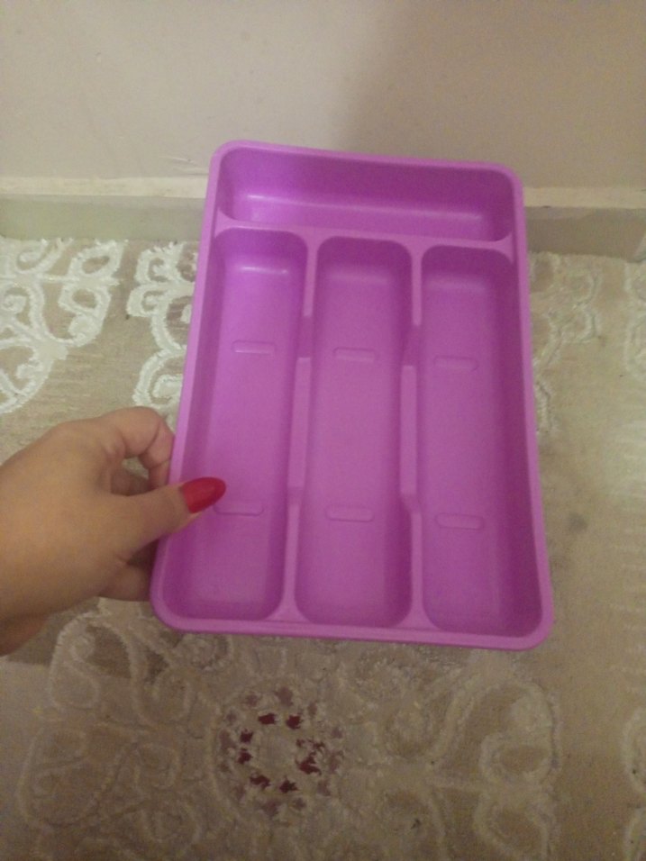 Pastel mor renkte, birden fazla bölmesi olan çatal kaşıklık. Hafif ve temizlemesi kolaydır.
