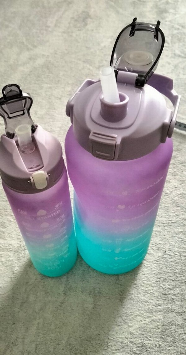 Pastel renkli çocuk ve yetişkinlerin kullanabileceği termos şişeleri, mor kapak ve gradyan tasarıma sahip, kolay içim için kapaklı ve pipetlidir. Pastel mor ve mavi renkte, kapaklı ve pipetli sporcu matara. Hacim ölçüleri ile su tüketimini takip etmeye uygundur. 2 ürün fiyatıdır.. 1L ve 2L dir.
