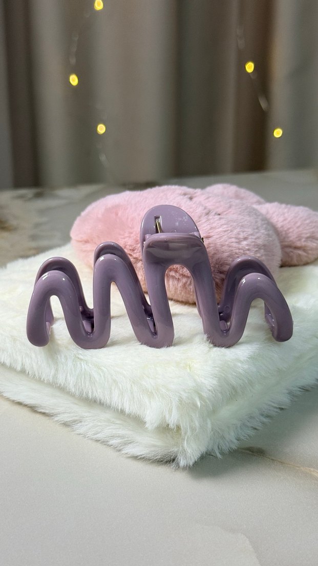 Pastel mor renkte, dalgalı tasarımlı plastik saç tokası. Elastik mekanizmasıyla saçları sıkıca tutar. Modern ve şık tarzlara uygundur.