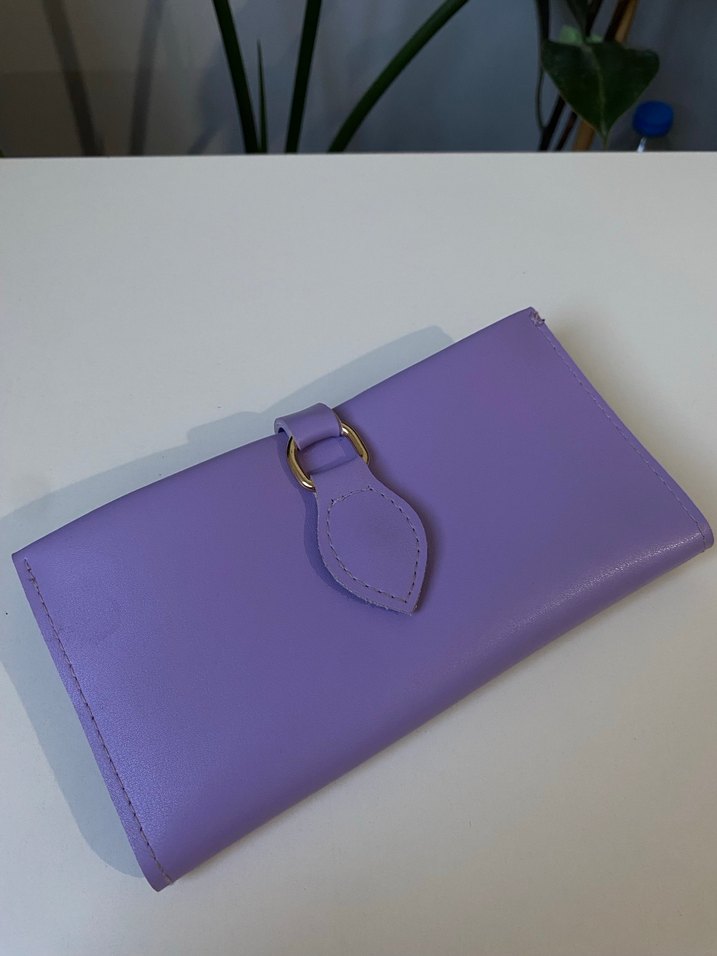 Pastel mor renkte, tokalı kapamalı, deri kadın cüzdanı. Modern klasik tarzda, desen içermeyen, günlük kullanıma uygun. Lila Kadın Cüzdanı Fermuarlı 10 kart gözü 1 fermuarı mevcut üründe hiçbir sorun yoktur oldukça kullanışlı