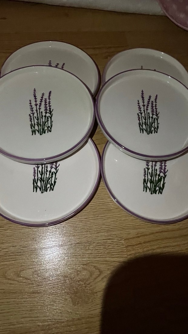 Pastel mor kenarlı, ortasında lavanta desenli lavanta desenlı pasta tabağı