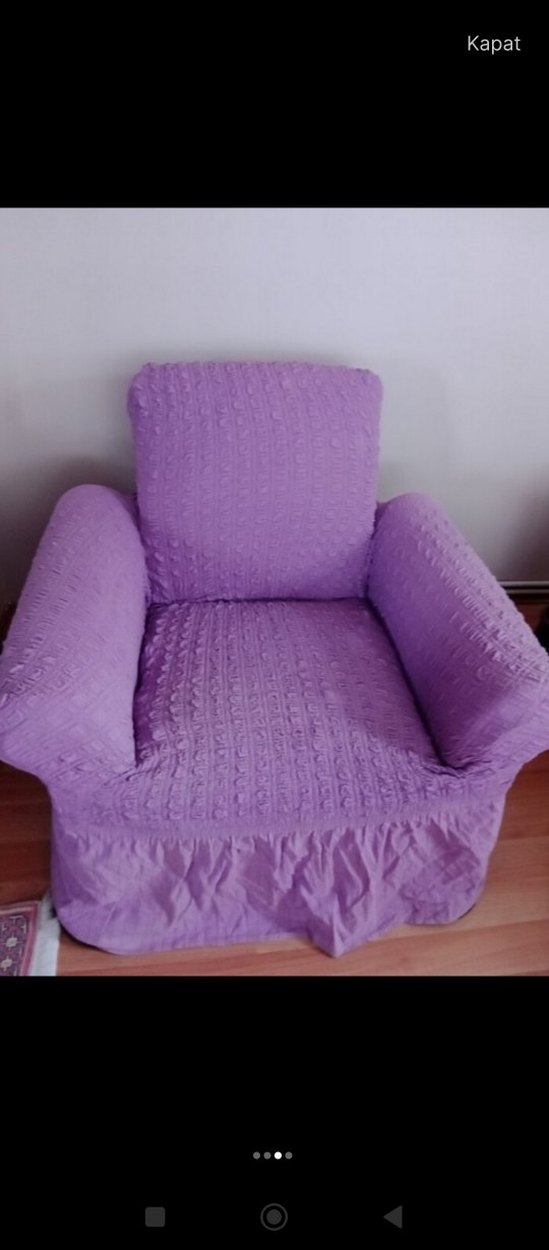 Pastel mor renkte, düz ve klasik tarzda, koltuğa tam oturan koltuk örtüsü. ️