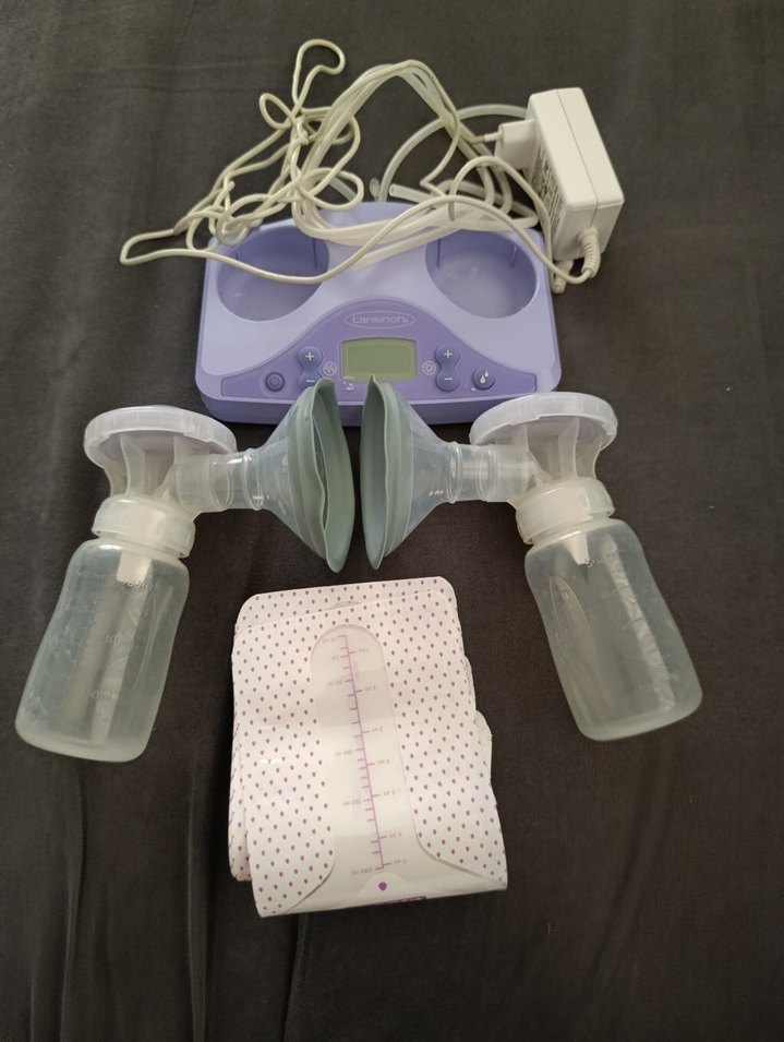 Pastel mor renkli, dijital ekranlı, çift pompalı elektrikli göğüs pompası emzirme surecim boyunca elim ayağım oldu vakumlasi gayet iyi çalışır iş görür durumunda yanında süt saklama poşetlerini hediye gonderiyorum