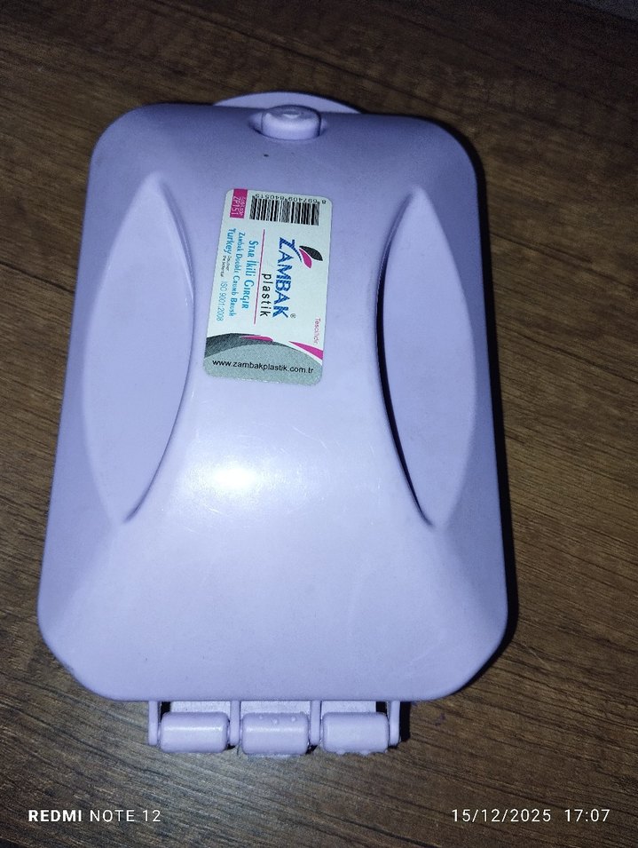 Pastel mor renkte, kapaklı ve kompakt tasarımlı gırgır