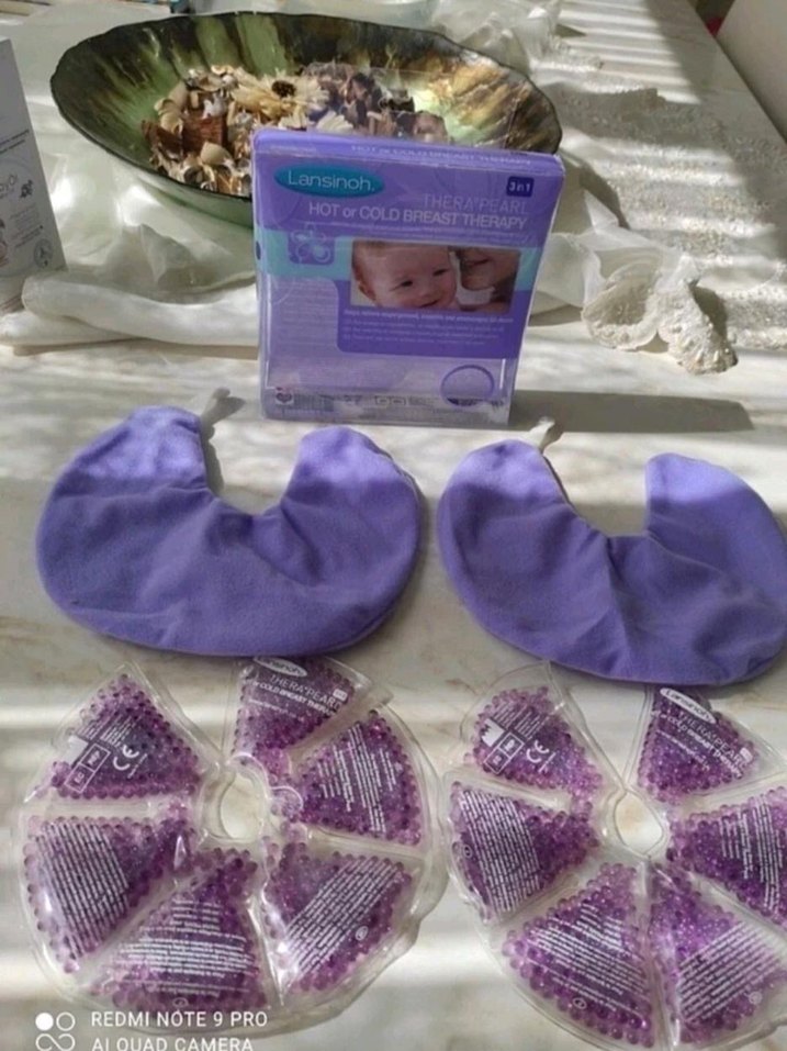 Pastel mor renkte, sıcak ve soğuk terapi için uygun göğüs pedleri seti. Emziren annelere rahatlık ve yatıştırıcı etki sağlar. ❄️
