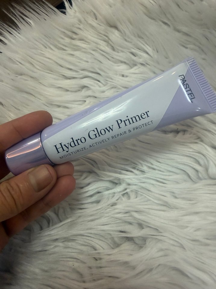 Pastel mor renkli Hydro Glow Baz Astar, cildi nemlendirir, onarır ve korur, yumuşak bir dokuya sahiptir.