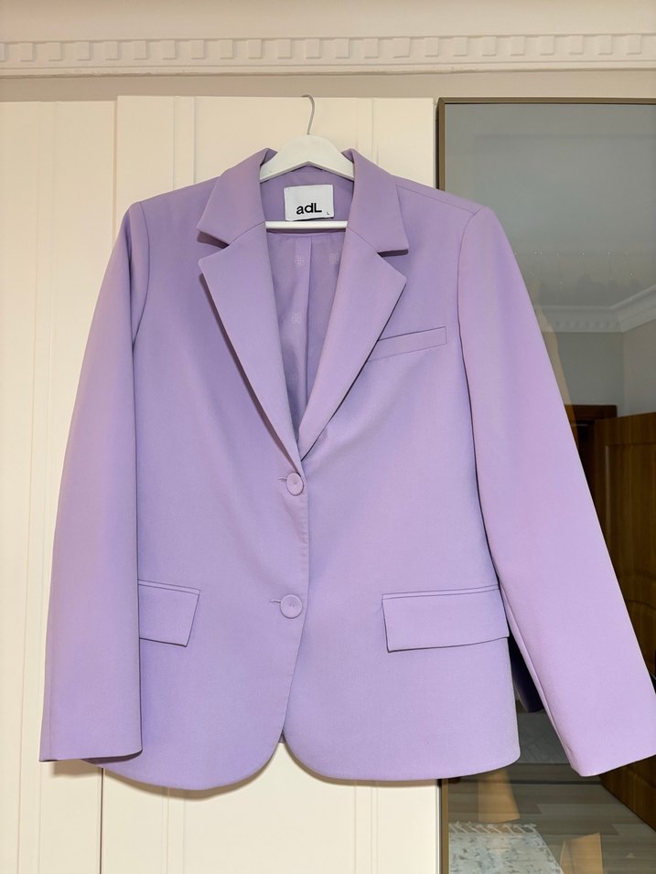 Pastel mor renkte, düğmeli, normal kesim ve uzun kollu kadın ofis blazeri. Dikişsiz ve sade tasarımıyla klasik görünüm sunar. Deformesi yoktur.