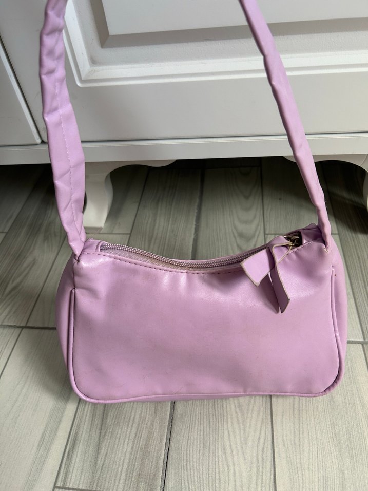 Pastel mor renkte, tokalı detaylı, düz yüzeyli kadın omuz çantası. Günlük sokak stiline uygundur. Makul üründür kusurları görsellere eklenmiştir.