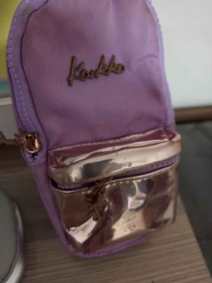 Pastel mor renkte, önünde metalik cep bulunan, kompakt tasarımlı kalemlik Fermuar kapamalıdır ve pürüzsüz dokudadır.