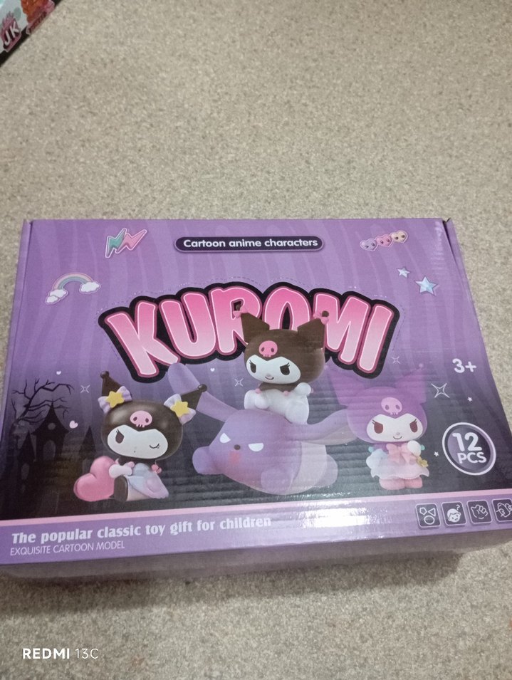 Pastel mor renkli Kuromi figür seti, 12 parça içerir. 3 yaş ve üzeri çocuklar için klasik bir oyuncak hediyesidir.