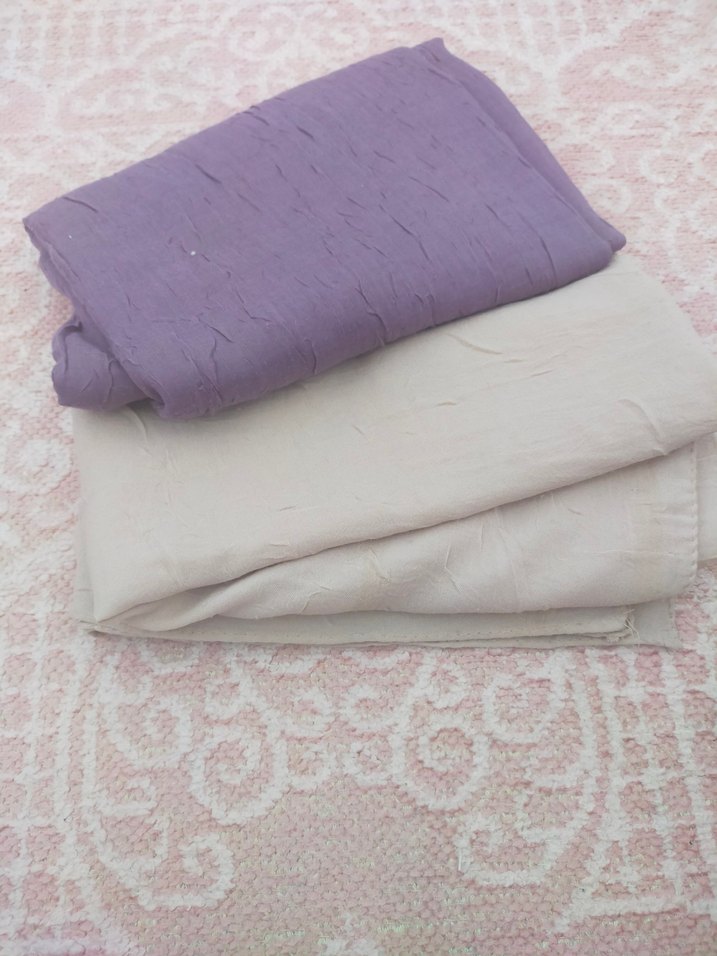 Sıfır ayarında. Lila olan şal krem olan eşarp
