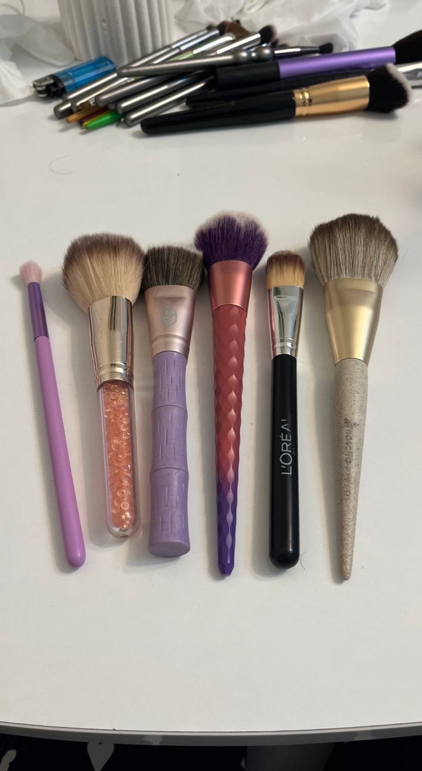 Çeşitli fırça şekillerine sahip pastel mor makyaj fırçaları, hassas uygulama için konforlu saplarla birlikte gelir. Yüz ve göz makyajı için uygundur.