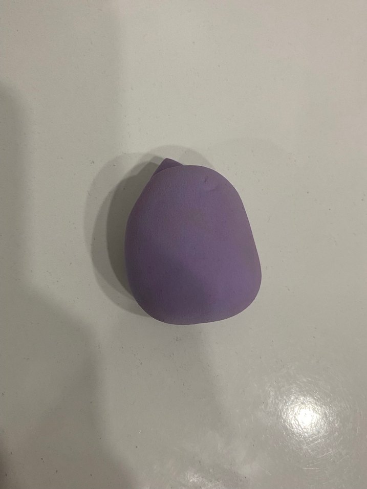 Pastel mor renkte, makyaj ürünlerini pürüzsüz ve eşit şekilde uygulamak için yumuşak dokulu makyaj süngeri.