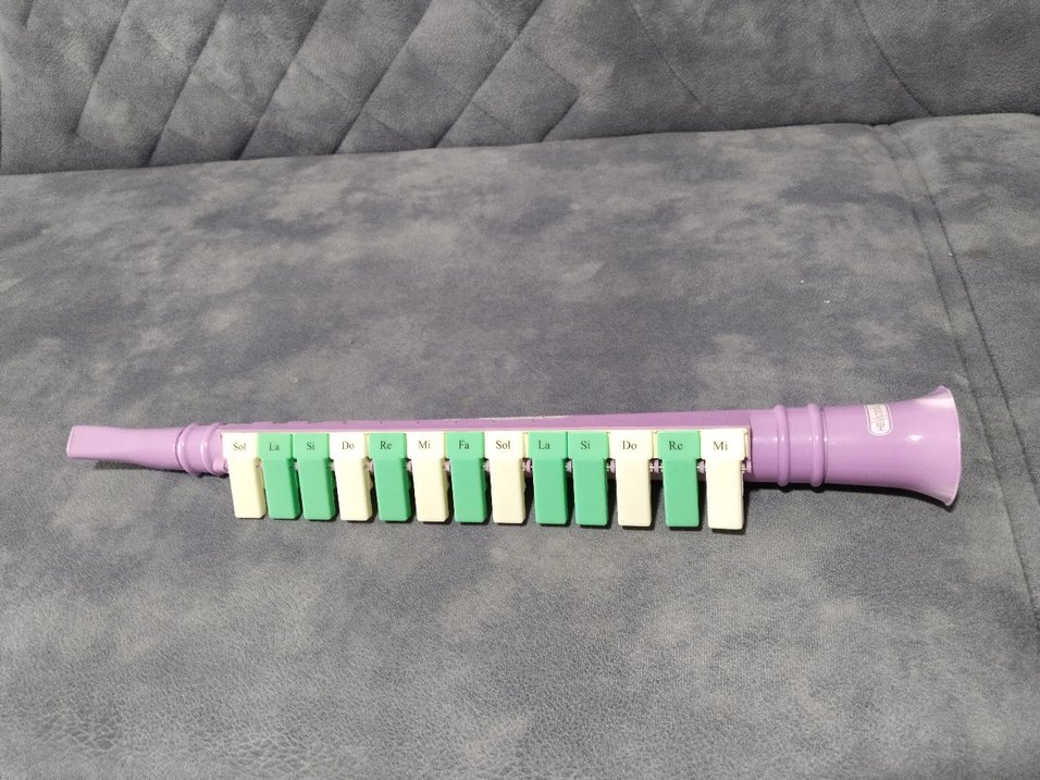 Pastel mor renkte melodika, üzerinde notalar yazılı tuşlarla birlikte gelir. Başlangıç seviyesine uygun canlı bir müzik oyuncağıdır.
